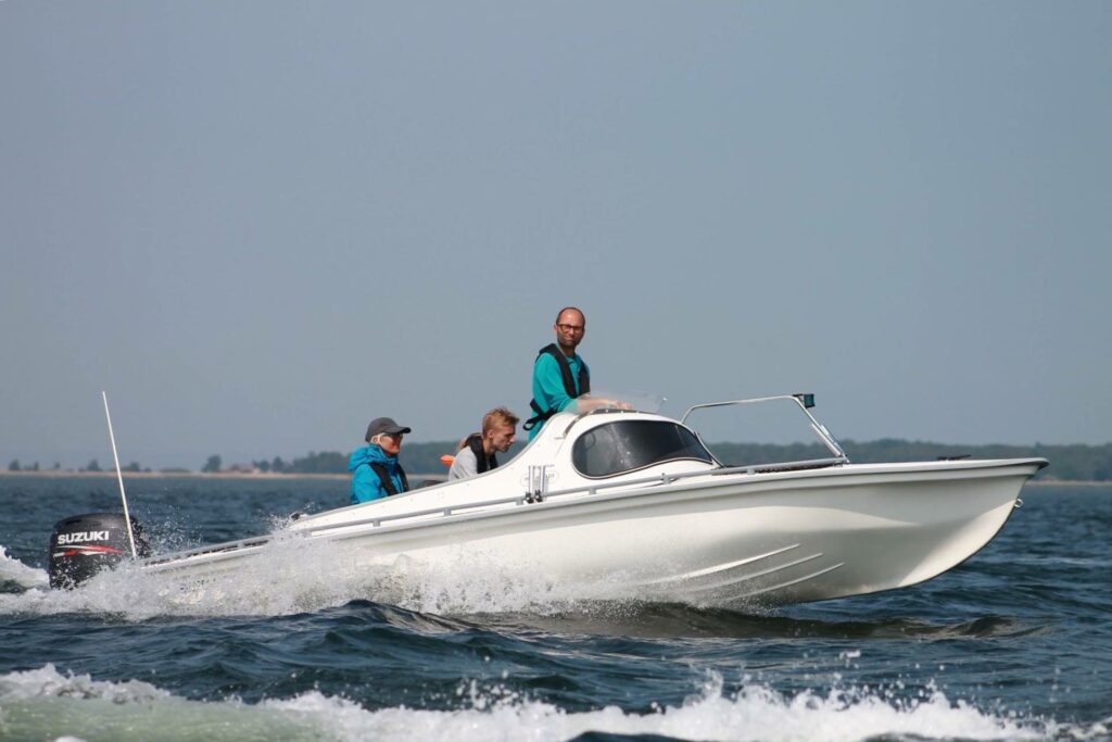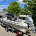 Vigtigste nyheder: – Inkl. hydraulisk styring, styrepult og rat. – Høj kaleche med sprayhood. – Havne-kaleche med lynlås/læsejl. – Leveres med Honda BF 50 motor. – MERE end 25 % større indvendig!